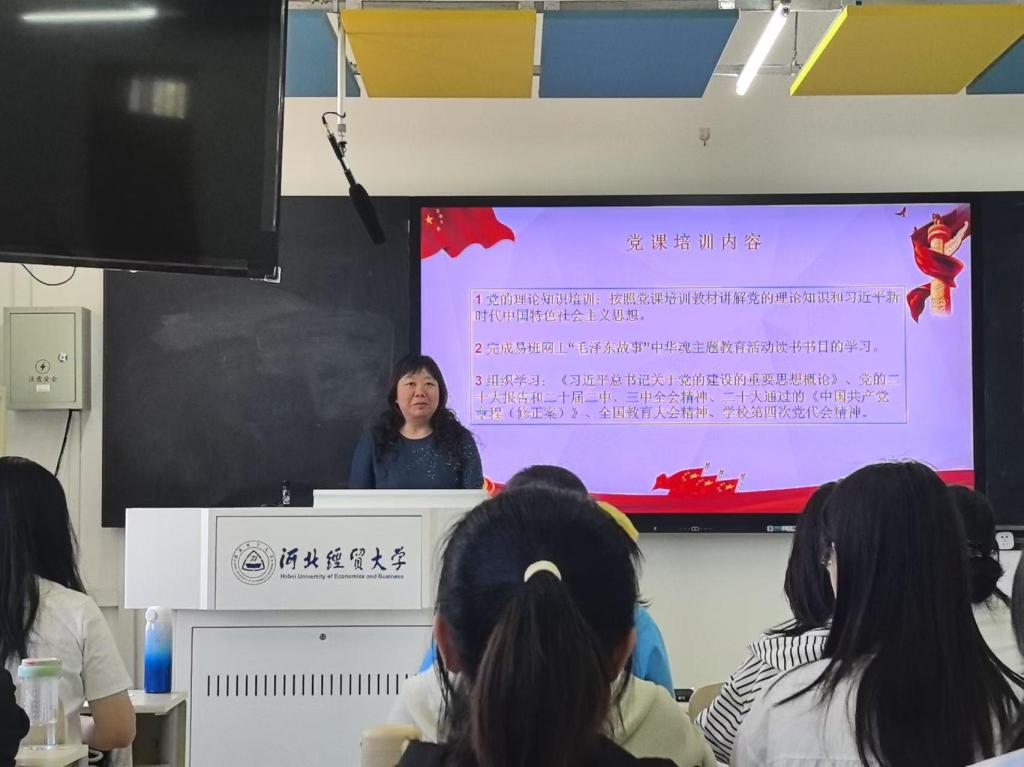 4月14日下午,太阳集团tcy8722在四教 201 教室举行第 58 期入党积极分子培训开班仪式暨专题党课。本次培训以学习贯彻党的二十大、党的二十届二中、三中全会精神为主线,聚焦 “外语+党建”特色,通过理论与实践相结合的方式,为入党积极分子提供全面、系统的教育培训,旨在增强他们的政治意识、理论素养和实践能力,为党的事业培养更多优秀人才。活动由行政党支部书记田晓光主持,第二员工党支部书记康文霞和第58期全体入党积极分子参加。