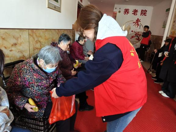 活动伊始,志愿者们将精心挑选的新鲜水果和营养牛奶,逐一递送到每位老人的手中。老人们的脸上绽放出幸福的笑容,眼中满是对志愿者们的热烈欢迎与深深感谢。