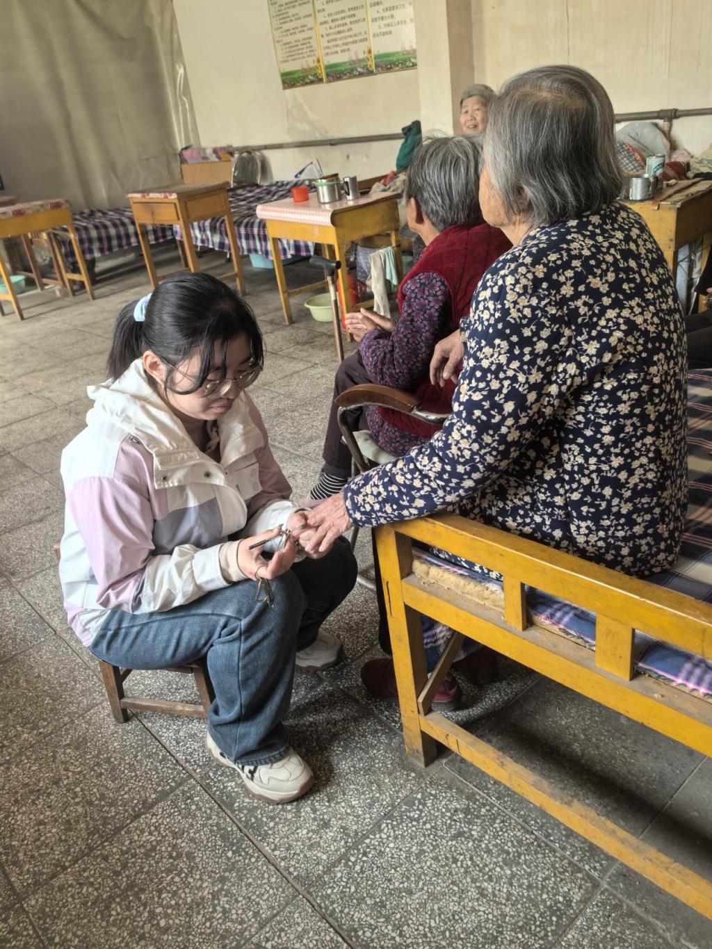 在服务过程中,张亚宁不仅给予关怀,更收获珍贵的人生启迪。通过与听力衰退、方言浓重的老人反复交流,她增强了个人沟通能力,培养了耐心与同理心,从最初简单陪伴到主动观察老人需求,提升了服务意识和责任意识,也从老人们讲述的故事中学会用更豁达的态度面对困难。