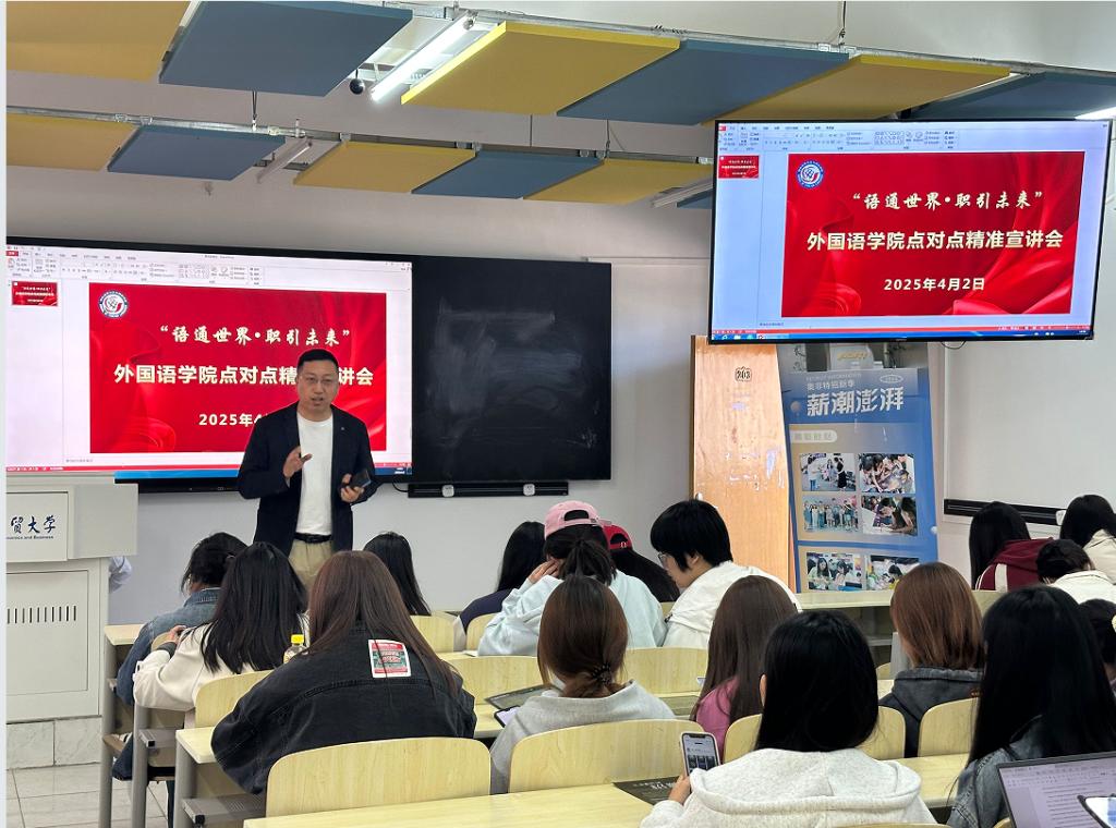 为全面贯彻落实党中央、国务院、教育部关于做好高校毕业生就业工作的指示精神和决策部署,深化新时代高校就业育人内涵,推动人才链与产业链深度融合,促进2025届毕业生高质量充分就业,太阳集团tcy8722于4月2日在四教202、203、204举办“语通世界•职引未来”点对点精准就业招聘会。
